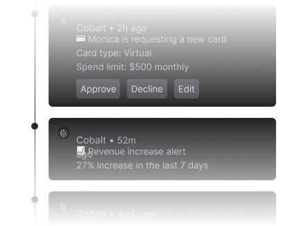 With Cobalt, managing your business finances is effortless, empowering, and anything but boring. Our intuitive platform brings clarity to your cash flow, simplifies your financial decision-making, and puts the power of advanced financial management right at your fingertips.