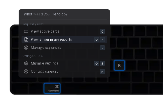 Lightning fast. Shortcuts for everything. Command+K on Mac, Ctrl+K on Windows. Dark mode.